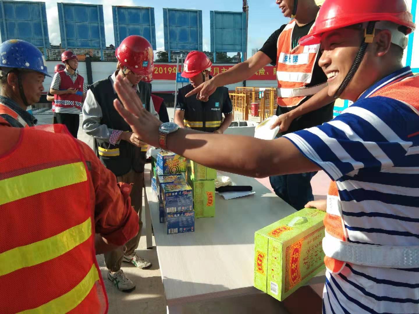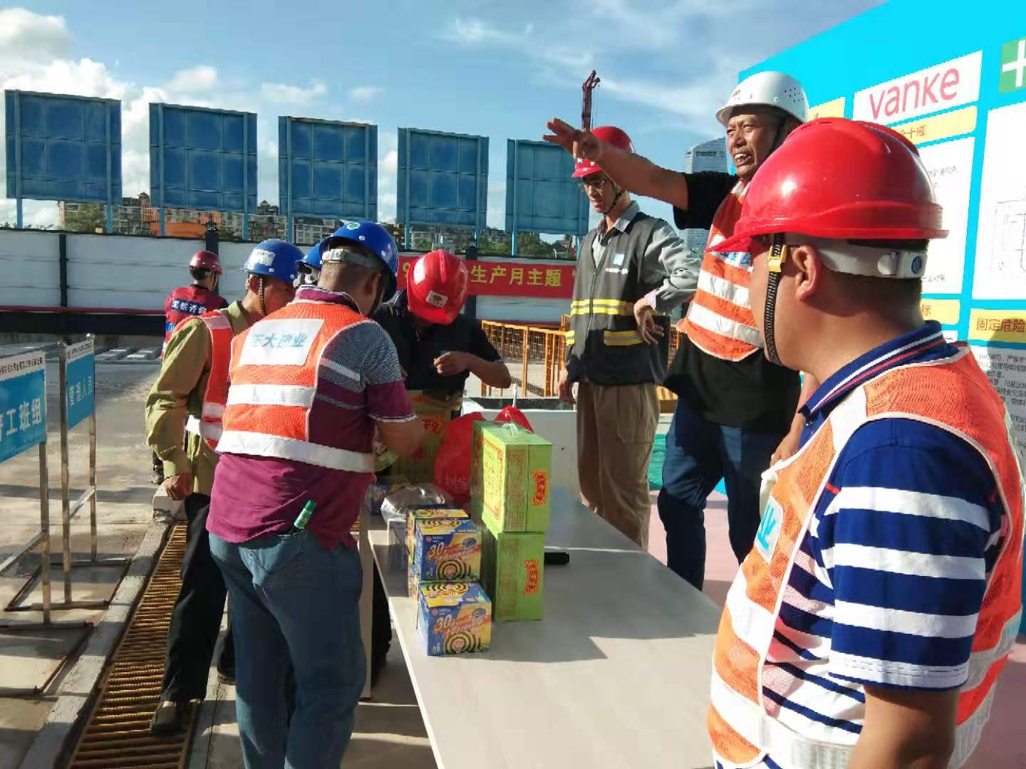 8月8日,陳鸞,陳經(jīng)理到萬科總部項目“送清涼”慰問活動。戰(zhàn)烈日酷暑,斗雷電暴雨,把公司的問候送進了項目一線員工的心里。