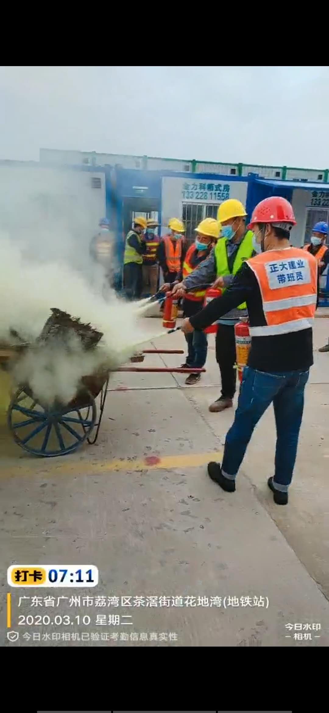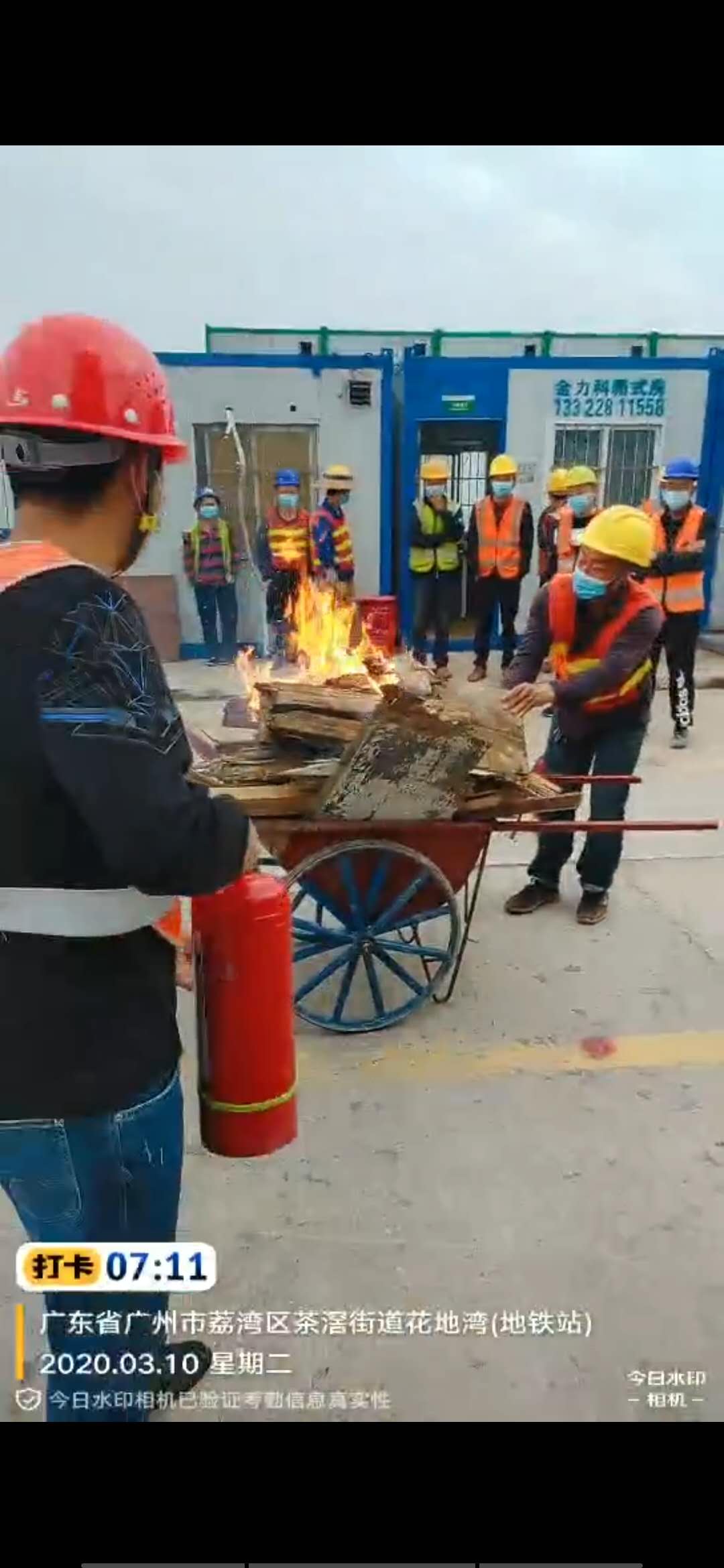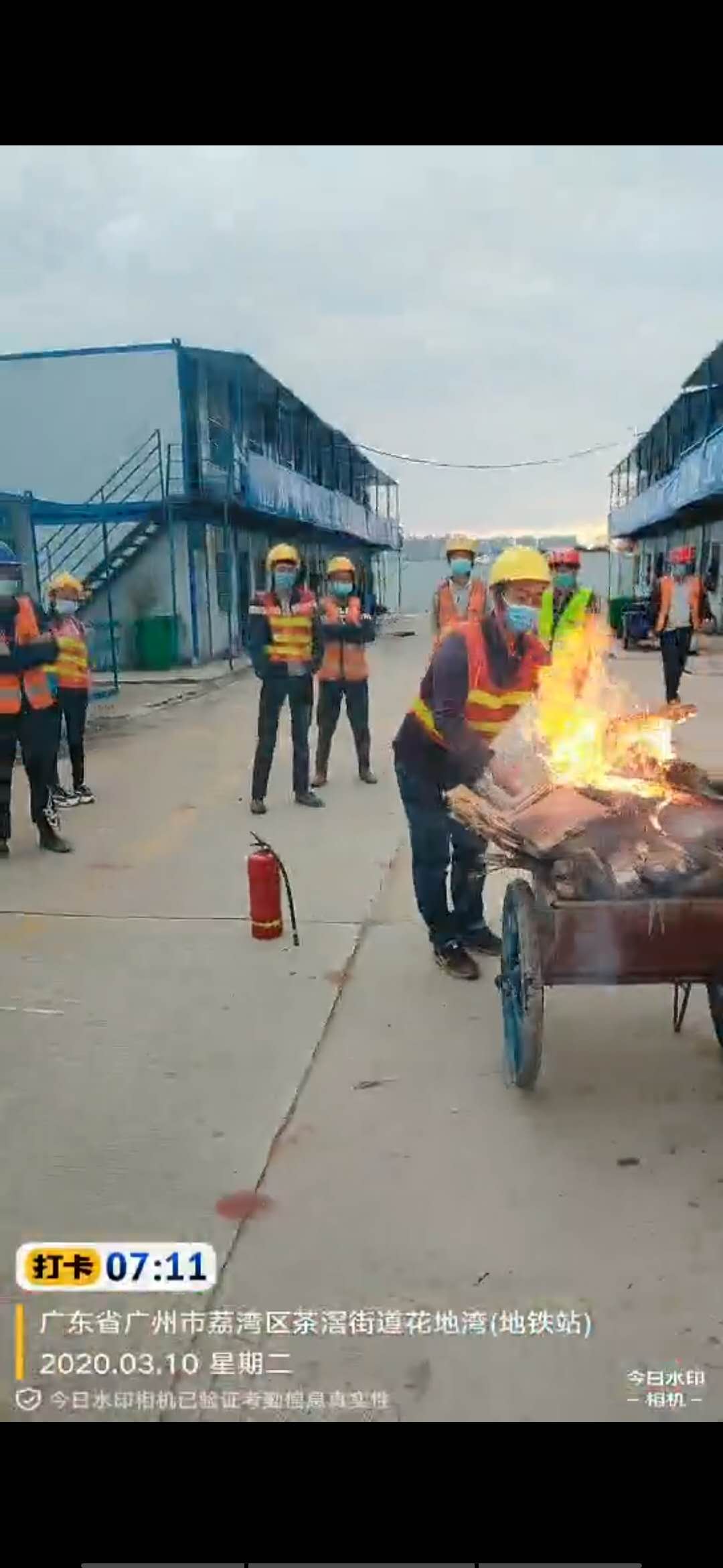 為加強工地消防安全,提高項目員工的消防意識,增強員工在緊急情況下的自我防護能力和應(yīng)變能力,使員工掌握到一定的消防基本知識。于2020年3月10日上午,我司廣州市荔灣區(qū)玉蘭苑項目組織了一次全員應(yīng)急消防演練,近20名員工參與了此次培訓(xùn)及演練活動。項目安全員康工為大家講解工地消防安全知識,現(xiàn)場指導(dǎo)和干粉滅火器及消防水槍的使用實操示范。隨后,參與的人員進行現(xiàn)場演練,此次演練從開始到結(jié)束都有條不紊地進行,整個過程前后銜接連貫,未造成混亂場面,成功快速的疏散了現(xiàn)場的工人,及時撲滅了大火,取得了預(yù)期效果。