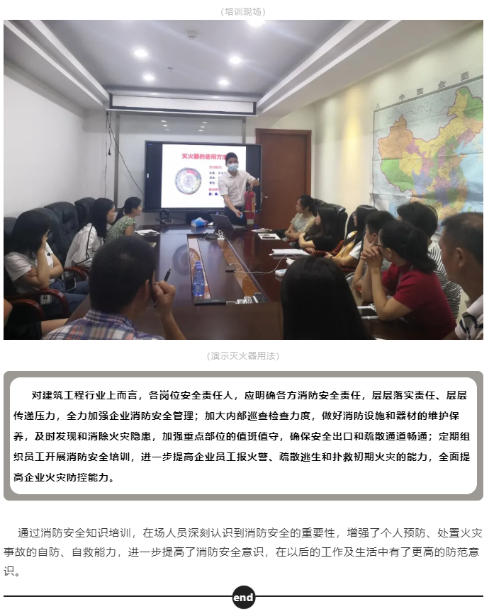 安全是公司運營的基礎(chǔ)保障,為進一步增強員工消防安全意識,不斷提升火災(zāi)防控能力,預(yù)防和減少火災(zāi)事故發(fā)生,9月11日深圳市正大建業(yè)建筑工程有限公司(以下簡稱:正大建業(yè))組織員工進行了消防安全知識培訓(xùn),此次培訓(xùn)由寶安區(qū)西鄉(xiāng)街道消防安全部來我司進行消防安全宣講,公司辦公室30余人參加了本次課程培訓(xùn)。